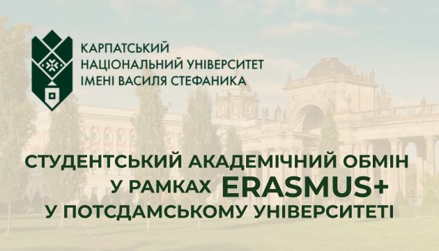 До уваги студентів 1, 2, 3 року навчання ОР Бакалавр та 1, 2, 3 року навчання ОР PhD! Відкрито конкурс на участь у програмі академічної кредитної мобільності ERASMUS+ Потсдамському університеті (м. Потсдам, Німеччина) на зимовий семестр 2026/2027 н. р. Передбачаються Читати далі